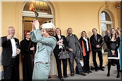 Pelléova vila: před svatbou, obřad, přípitek, gratulanti, na terase, Jája a Honza na zahradě, konec